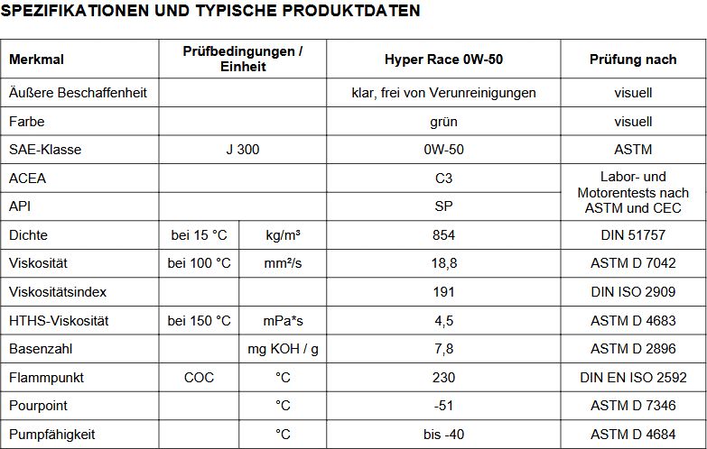Wenn jede Runde zählt und Leistung keine Kompromisse kennt, ist Hyper Race 0W-50 die erste Wahl.